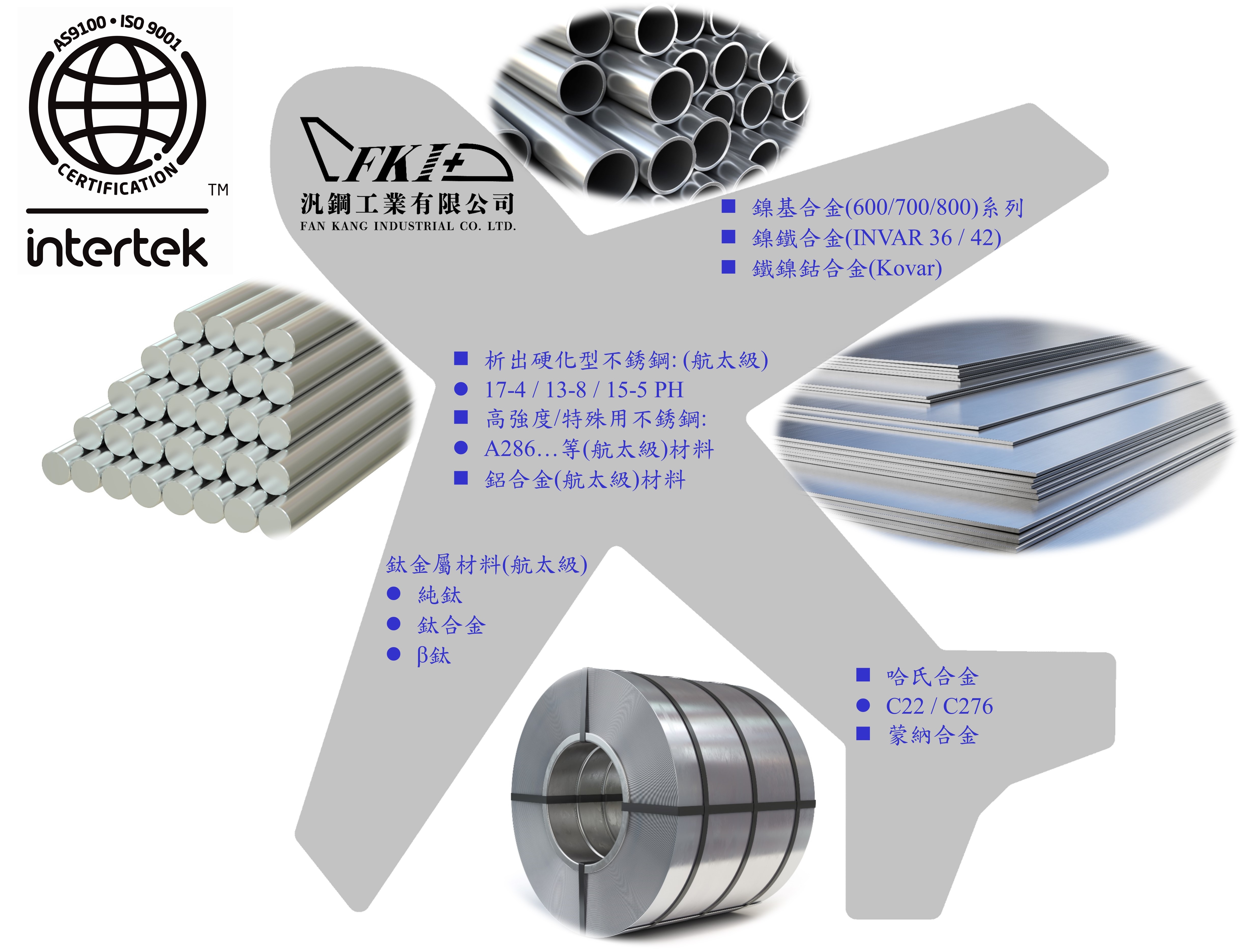 汎鋼工業有限公司成立於2022年5月,有國內外之供應體,提供航太、國防、醫療、電子及工業等所需金屬物料與相關製程所需之技術。與歐、美、日等各國先進材料供應商,維持良好關係且部分有合作及代理。加上團隊成員多年與國際材料廠商合作經驗,可提供包含純鈦、鈦合金、鎳基合金、鈷基合金、超合金、高強度不锈鋼、航太級不鏽鋼、鋁合金、航太級鋁合金、鑄造鋁板ACP5080、3D列印金屬粉末等材料,應用於航太、醫療、及各項工業用途。