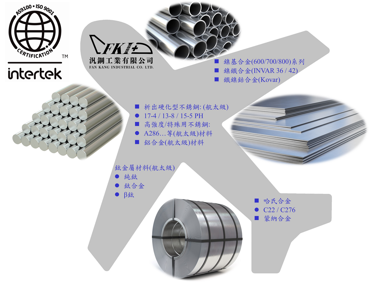 汎鋼工業有限公司成立於2022年5月,有國內外之供應體,提供航太、國防、醫療、電子及工業等所需金屬物料與相關製程所需之技術。與歐、美、日等各國先進材料供應商,維持良好關係且部分有合作及代理。加上團隊成員多年與國際材料廠商合作經驗,可提供包含純鈦、鈦合金、鎳基合金、鈷基合金、鎢合金、鉬合金、超合金、高強度不锈鋼、航太級不鏽鋼、鋁合金、航太級鋁合金、鑄造鋁板ACP5080、3D列印金屬粉末等材料,應用於航太、醫療、及各項工業用途。